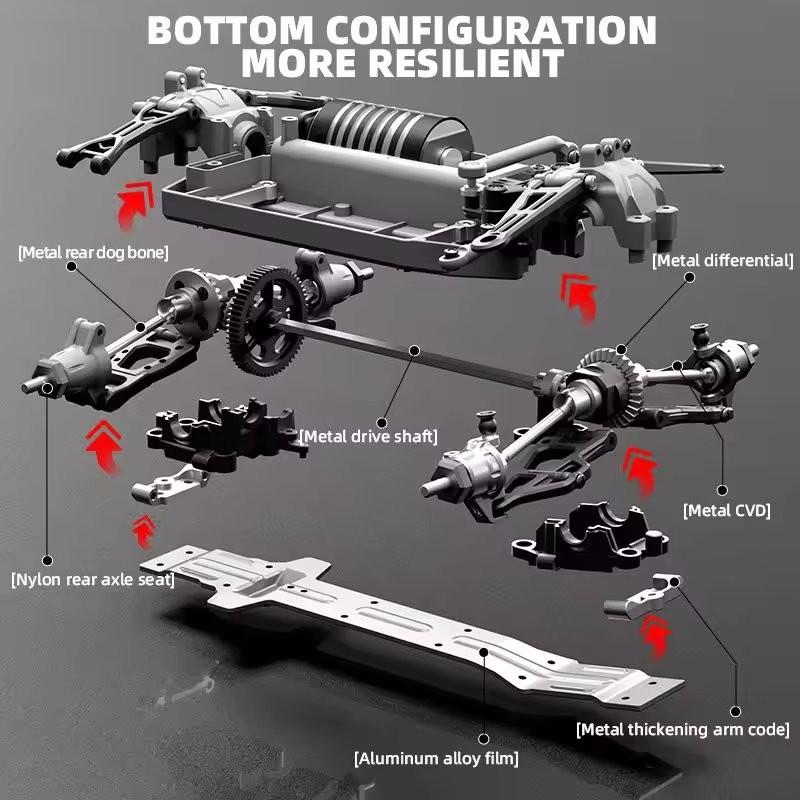 Don't be fooled by the compact 1:16 scale, these models are full of technical features that will get noticed. Adopting four-wheel drive design, powerful motors and steering, off-road chassis system with metal active differentials and independent shocks, the